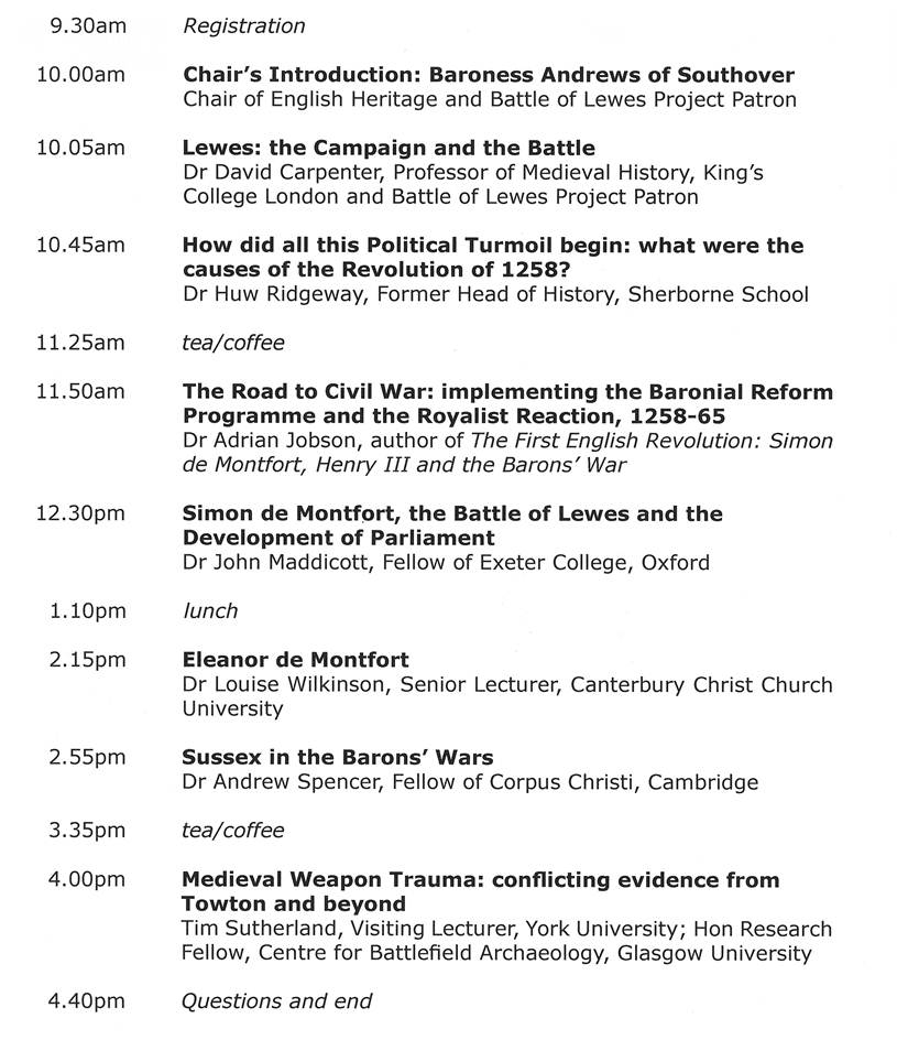 This one day Sussex Archaeological Society conference will be held on Saturday 14 April 2012, at the Assembly Room, Lewes Town Hall. Tickets are now available at £30. To book phone 01273 405737, Tues-Fri, 10 a.m.-3 p.m. The conference forms part of the Battle of Lewes project – 750th anniversary in 2014. Tickets include a delegate booklet and tea and coffee.