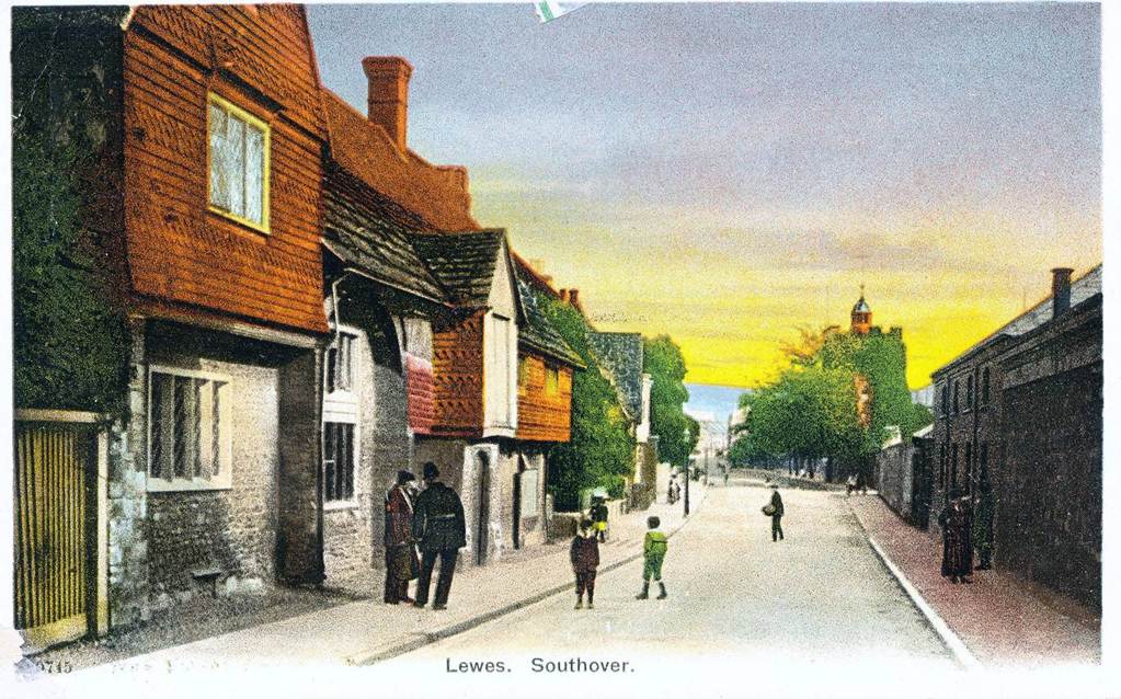 This coloured postcard of Southover High Street (publisher unidentified) features Anne of Cleves House in the left foreground, and Southover Church in the middle distance. It is remarkable how many Edwardian cards feature policemen – they seem to have been everywhere.