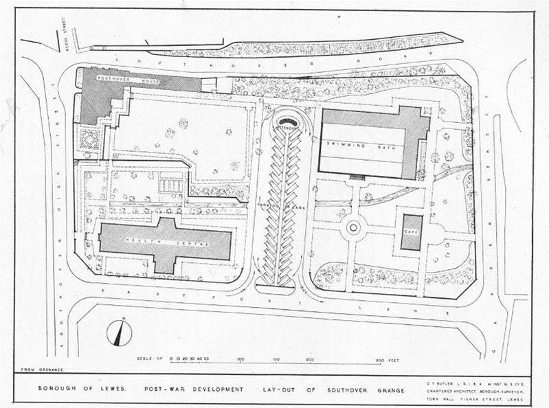 The first report of the Borough of Lewes Post-War Development and Housing Committee, published in June 1944, recommended that the purchase of Southover Grange and its gardens should be a priority. They valued its central site and feared it might fall into the hands of speculative developers – this was before the 1947 Town & Country Planning Act gave local authorities a measure of control over planning and introduced the concept of the listed building. An option to buy was negotiated with the owner, farmer and property owner Harrie Stacey. The Grange itself had been requisitioned by the military during the war, and was doubtless not in peak condition.