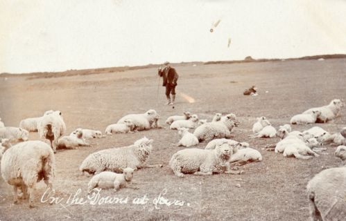 - Shepherd & Southdown sheep on the Downs at Lewes, 1907 postcard