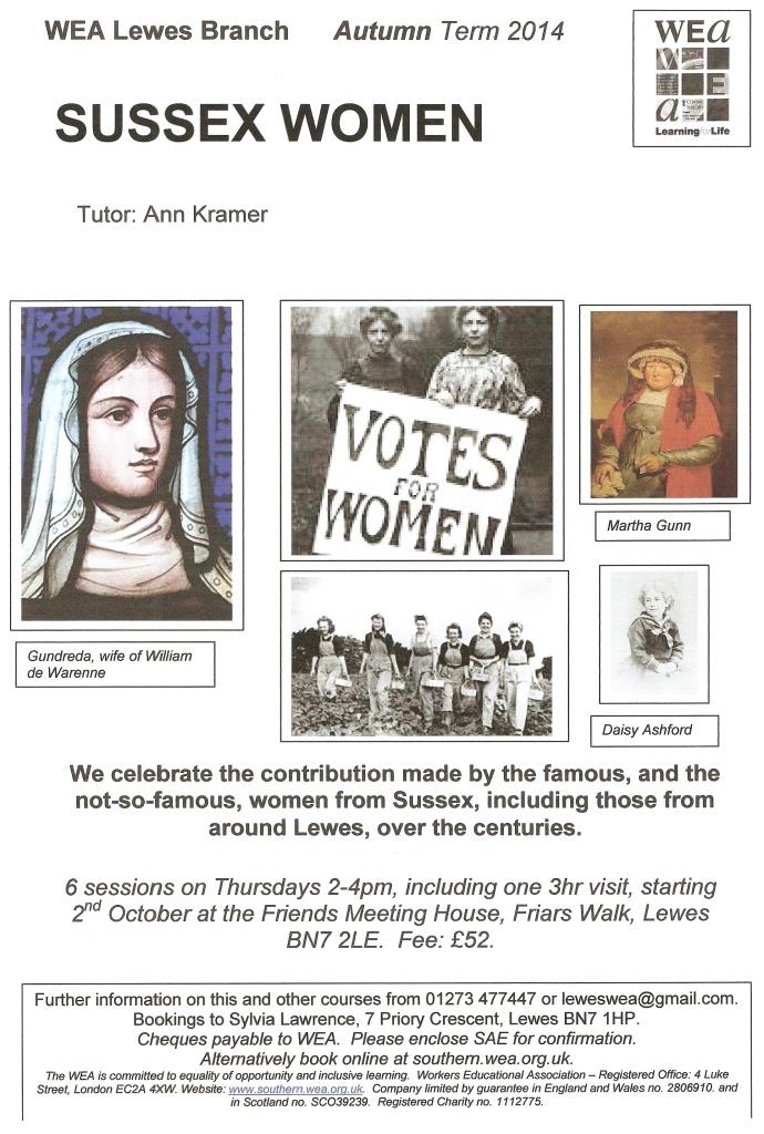 Enrol now: via the WEA website, or with Sylvia Lawrence, 7 Priory Crescent, Lewes BN7 1HP. Contact 01273 477447, leweswea [at] gmail.com