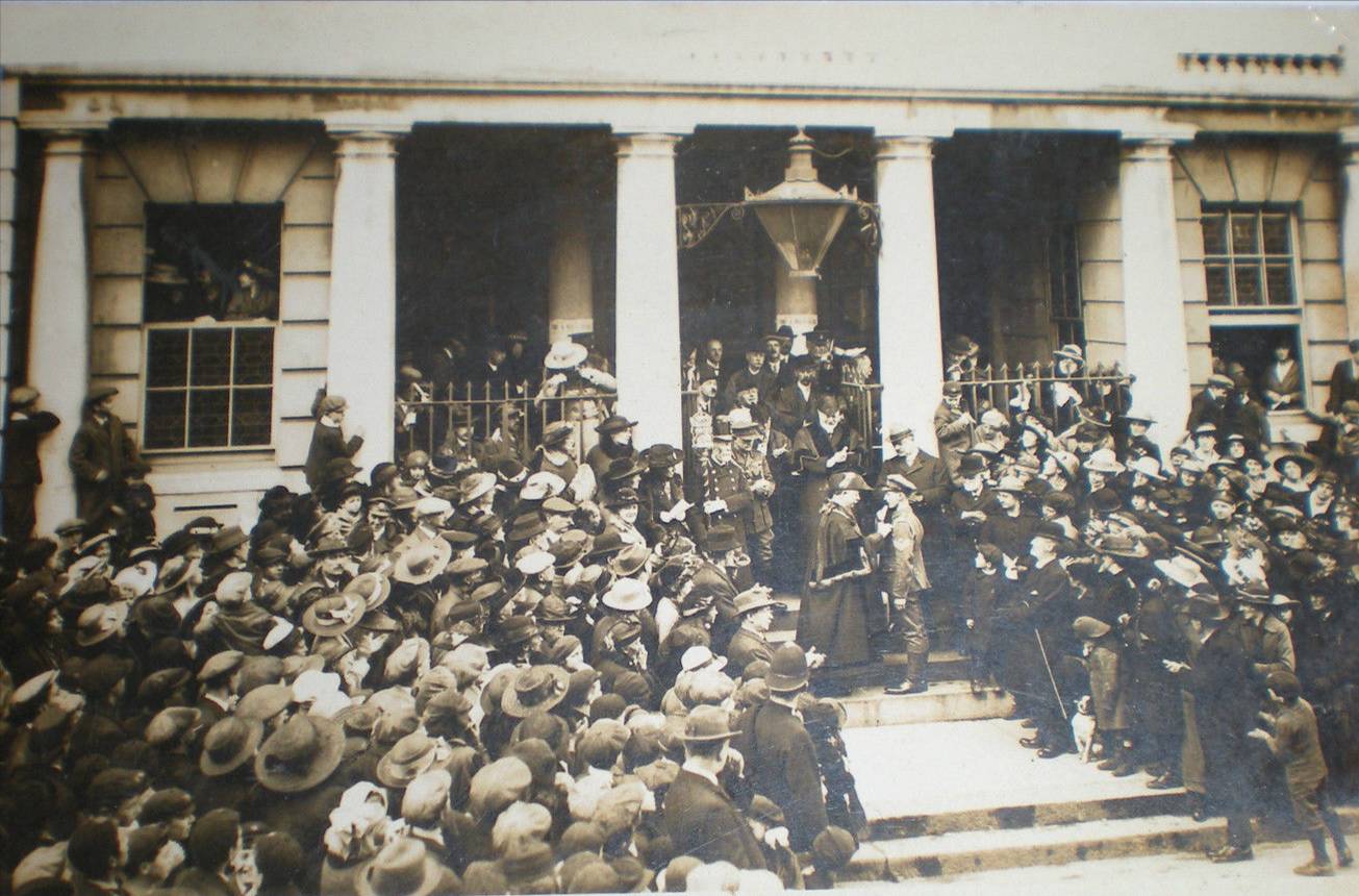 This postcard, postmarked from Lewes on 19 November 1918, was described as a Great War medal ceremony when the card was offered for sale on ebay recently. The awards were apparently made by the mayor on the steps of County Hall.