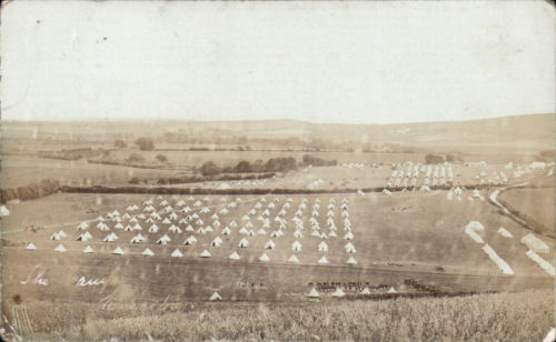 One of many postcards produced by local photographers featuring military units camped on the Downs around Lewes for their summer training. This postcard was produced by J. Cheetham and shows the Camp at Kingston near Lewes.