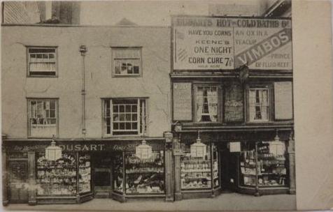 This Mezzotint Company postcard shows Dusart’s shop on Lewes High Street before it was destroyed by a fire in October 1904. The Lewes fire brigade could not prevent the building being completely destroyed, and Mezzotint also rushed out a photographer to record the aftermath. The consequent postcards are quite commonly encountered – one is featured in Bulletin no.48.