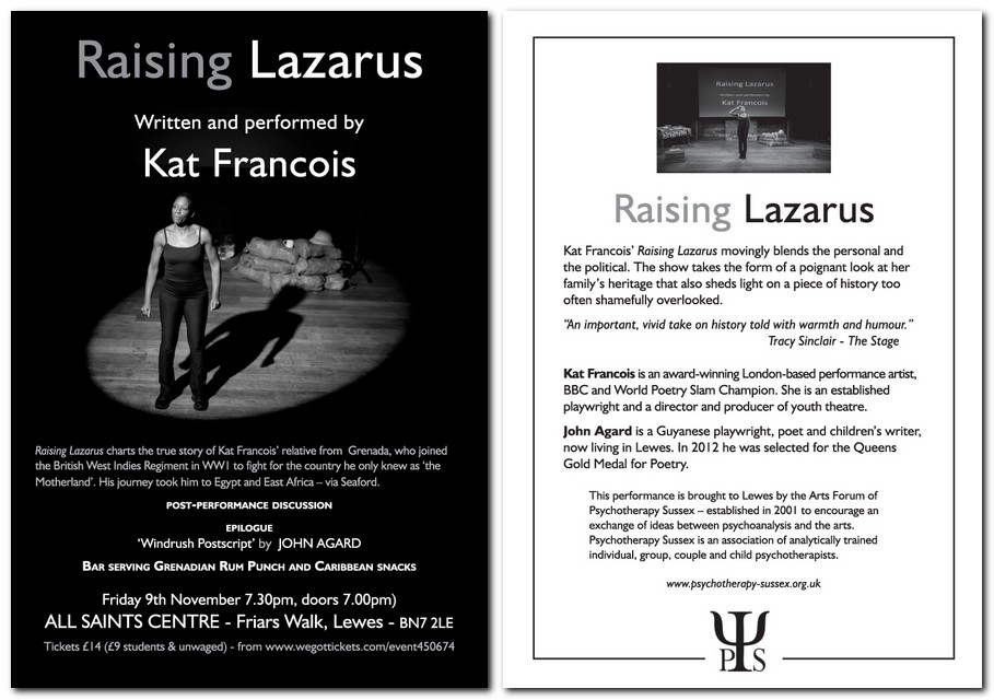 There will be a post-performance discussion, and an epilogue: ‘Windrush Postscript’ by Lewes poet John Agard.