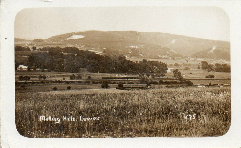 This postcard view taken from the lower slopes of Landport across the Brooks to Malling Down was postmarked 1913. The photograph was relatively recent, as there is no sign of Malling Mill, burnt down in 1908.