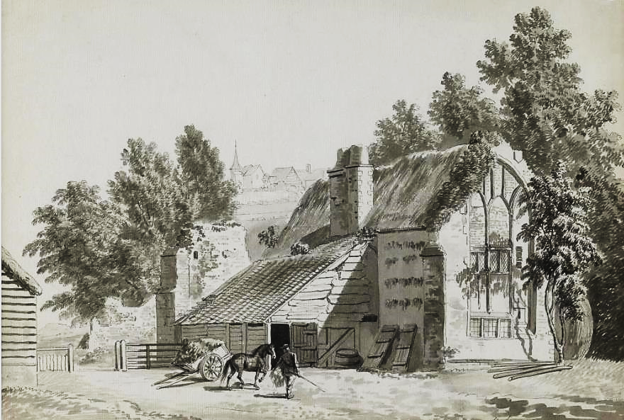This pencil and wash drawing by Paul Sandby (1731-1809) features St James’s Hospital, Lewes, with St Anne’s church faintly visible in the background. It was offered for auction in April 2021 by Bonhams, London, with an estimated price of £800-£1,200 and sold for £750 (£956 including buyer’s premium). Paul Sandby, born in Nottingham, was a landscape painter who is regarded as the father of British watercolour painting. He was a founder member of the Royal Academy in 1768, and exhibited there for the rest of his life.