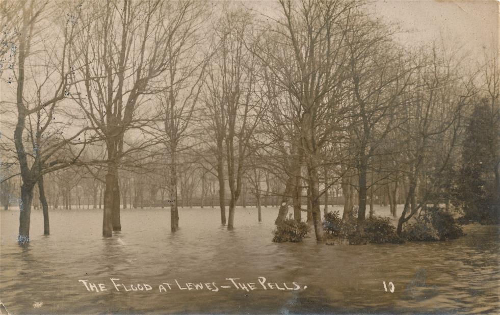 The Edwardian postcards below are from a series published by the Press Photo Company of 75 Havelock Road, Brighton. The company was established in 1907 by photographer Edward Leonard Carr (1874-1949) and continued until about 1913, specialising in recording topical events in the area. The Lewes floods shown below are those of October 1909. Two other dated P.P. Co. photographs of these floods were published in Bulletin no.40.