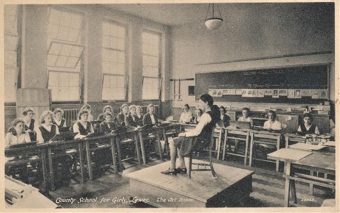 The six postcards below feature the County School for Girls, Lewes, (later the Lewes Girls’ Grammar School) and were published by Marshall, Keene & Co of Hove. The company were very active in this field in the 1930s, but these appear to be rather later. For more on the history of the school see Bulletins numbers 34, 35, 37 & 127.