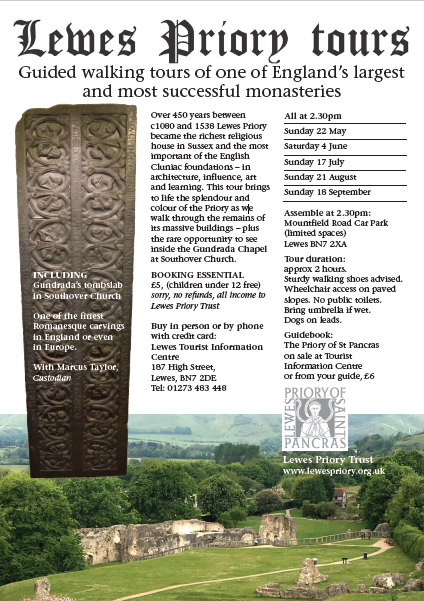 At 2.30pm on Sunday 22nd May, Lewes Priory Trust is offering the first in a series of guided walking tours of the Lewes Priory Park and the Gundrada Chapel at Southover church.