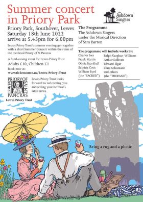 Lewes Priory Trust’s summer evening get-together with a short Summer Concert within the ruins of the medieval Priory of St Pancras.