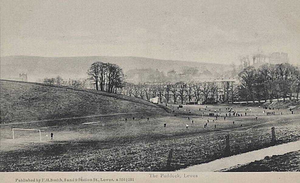 This glass magic lantern slide offered recently on eBay shows the view from Landport towards the chalk quarries at Offham. It most probably dates from the late 19th or very early 20th century.