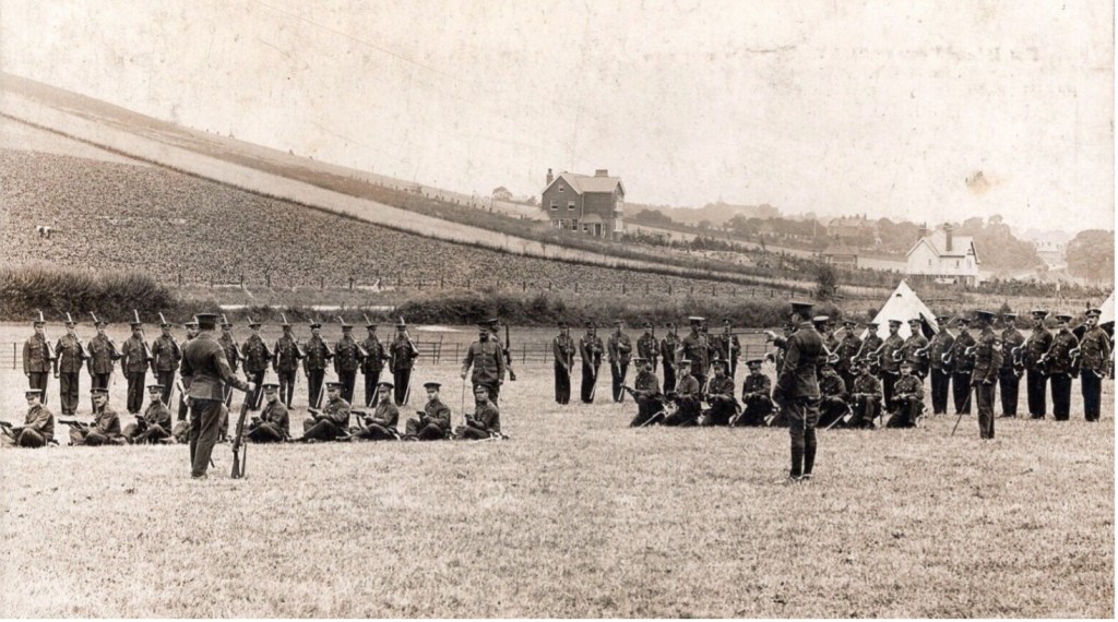 This postcard of one of the many summer territorial army camps on the Downs around Lewes in the Edwardian era was posted to Warnham, near Horsham, in 1906. This part of Lewes looks very different a century or so later.