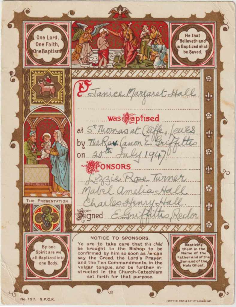 10. A Cliffe Baptism certificate
