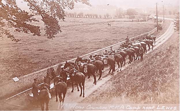 This postcard view titled ‘1st Home Counties R.F.A. Camp near Lewes’ looks as if the location ought to be easily identifiable, but I can’t work out where it was taken. Can you help?