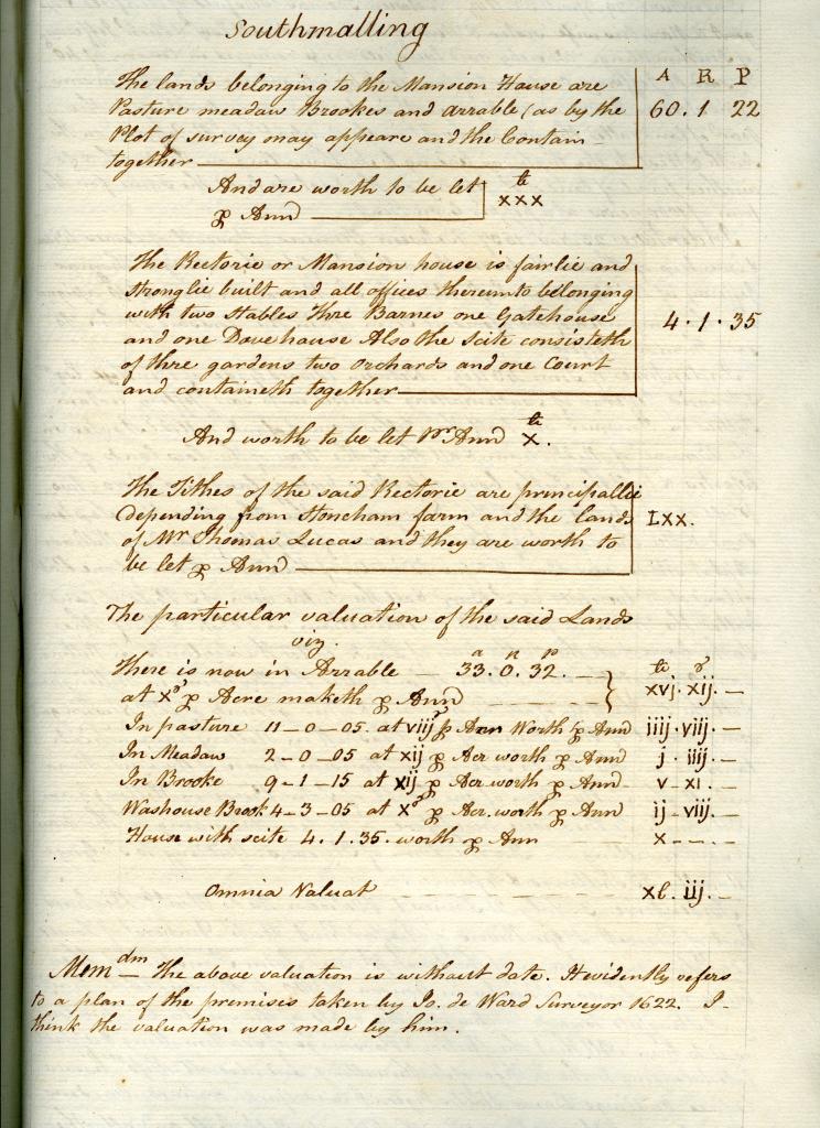 Valuation of Malling Deanery, attrib. John DeWard 1622. Woollgar’s Spicilegia Vol. II.