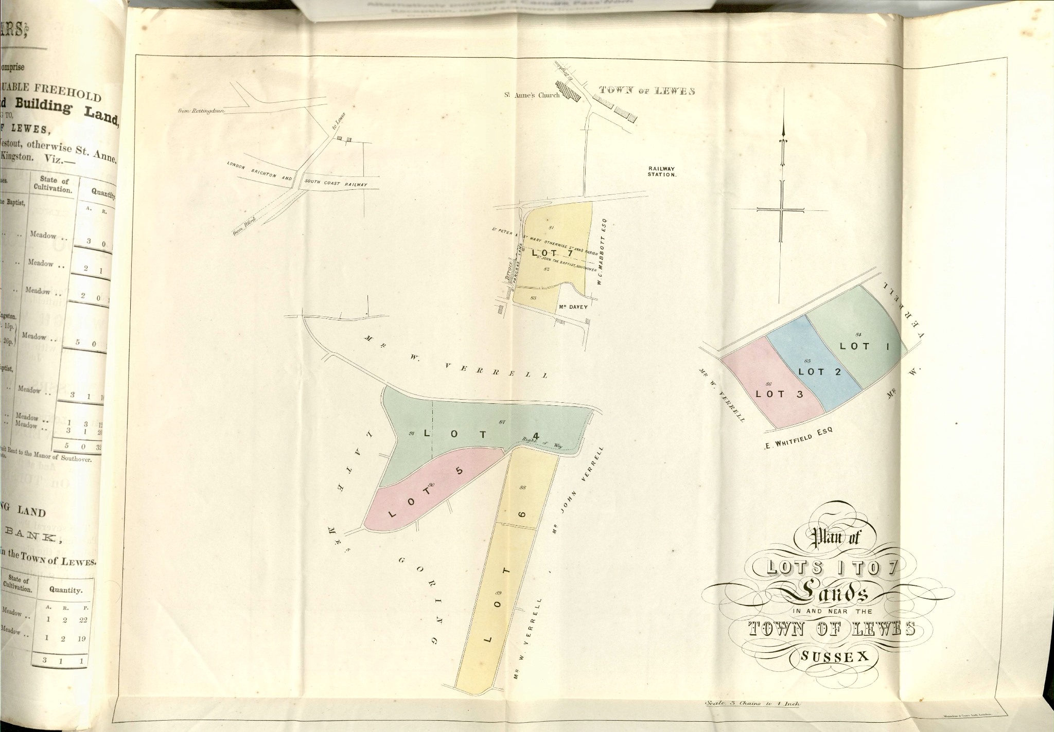 Sale particulars of freehold building land, Southover Priory Estate 1867 – ESRO, ACC 5702/22/1 (above) (Click to enlarge)