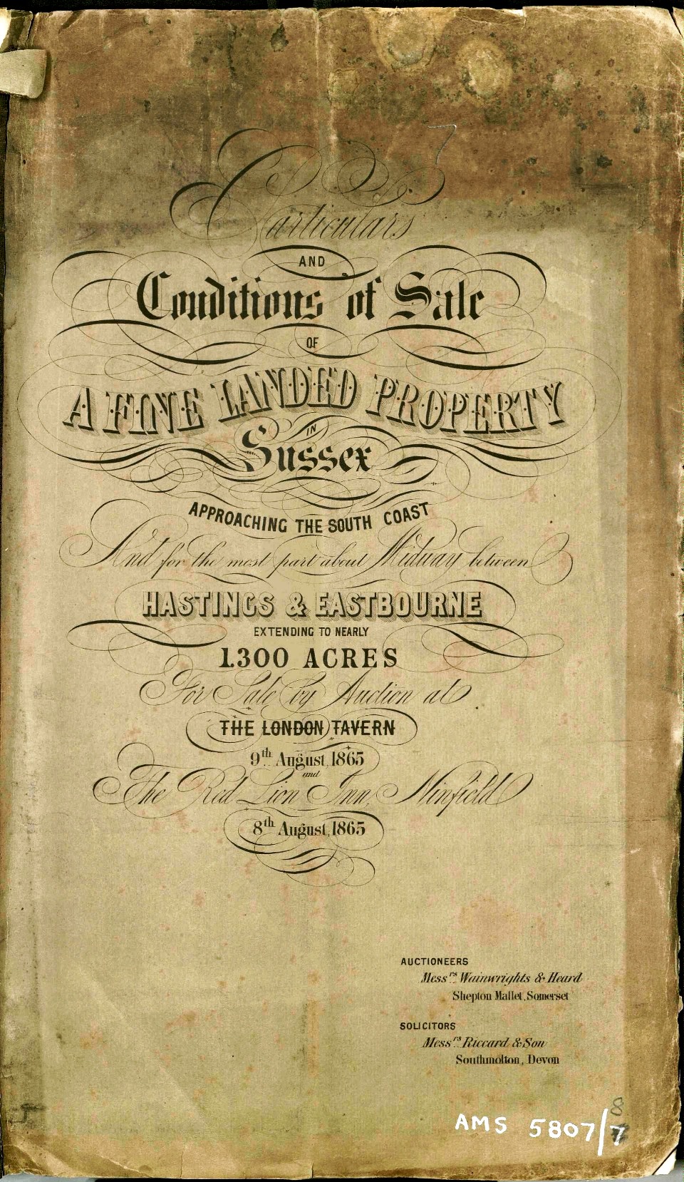 Particulars & conditions of Sale of Acland Estate 1865 -ESRO, AMS 5807/1/8 (Click to enlarge)