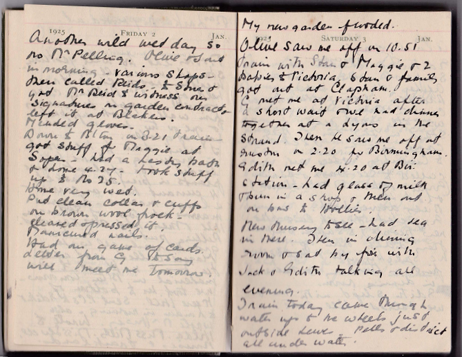 Entry in Winifred Martin’s diary for January 1925. Winifred lived with her sister Olive at 6 Grange Road. (click to enlarge)