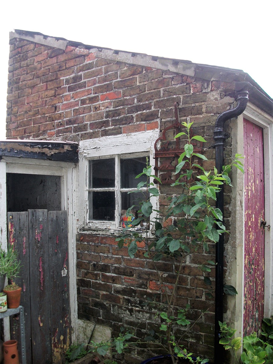 Outside toilet and communal washhouse at rear of terrace (right)
