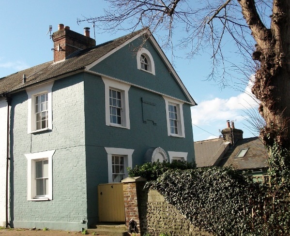 In 1827 John Cowper built two more houses (shown right) using the grey bricks popular in the 1820s to give a stone-like appearance edged with the familiar red bricks. Flint was used at the rear.