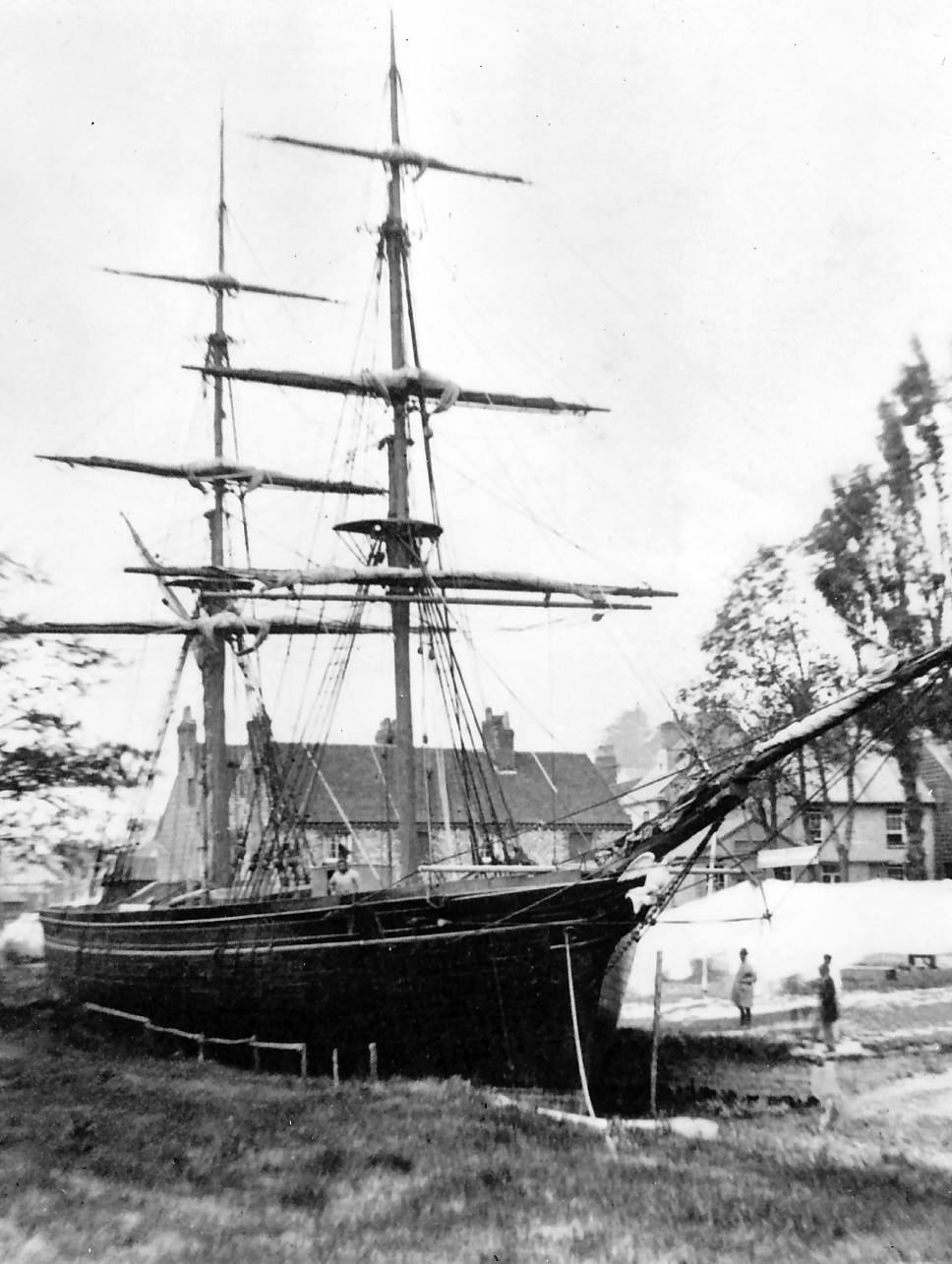 A fine photograph, widely reproduced, shows a ship in Higham’s yard. It has been suggested that the ship is the coal brig, Halifax, undergoing repairs in 1839 but such a photo could not have been taken that early and is likely to be after 1850/60. It has been suggested that this was the Lewes Lass built in 1850, which was a snow-rigged vessel with the figurehead of an angel. However most evidence points to the ship as the Eagle, a ‘snow’, with the figurehead of an eagle, built in 1863.