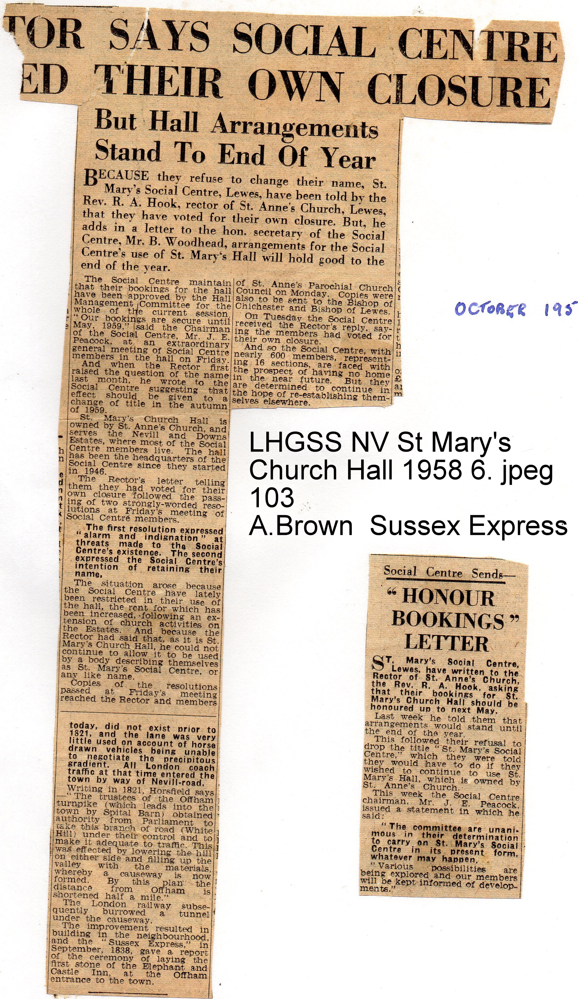 Lewes, Nevill 1958 October St Mary’s Church Hall Social Centre controversy 2 103