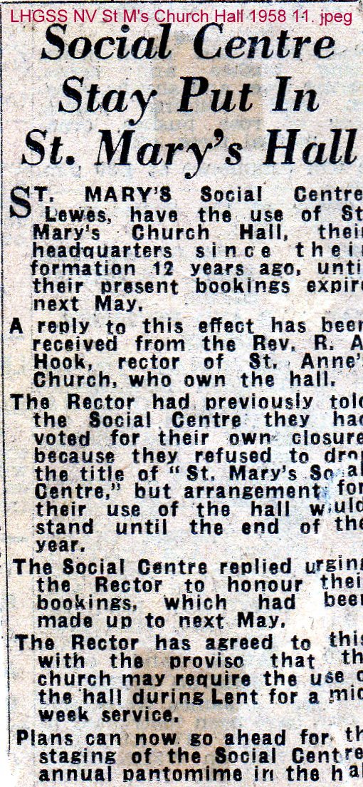 Lewes, Nevill 1958 St Mary’s Social Centre stays in Church Hall 108