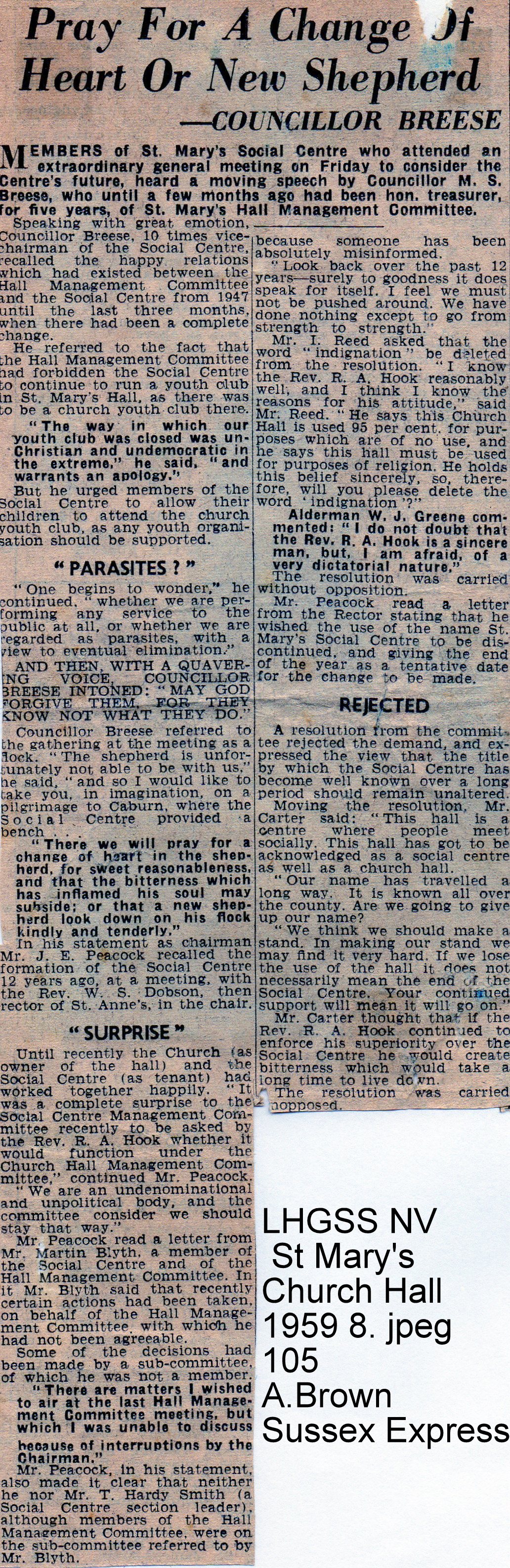Lewes, Nevill 1958 Rector objects to social centre at St Mary's Church Hall 104