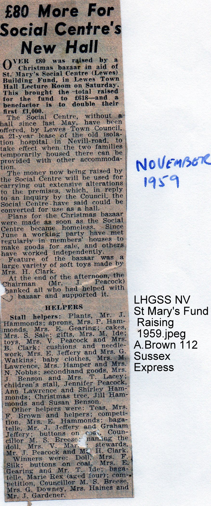 Lewes, Nevill 1959 November St Mary’s Fund raising 112