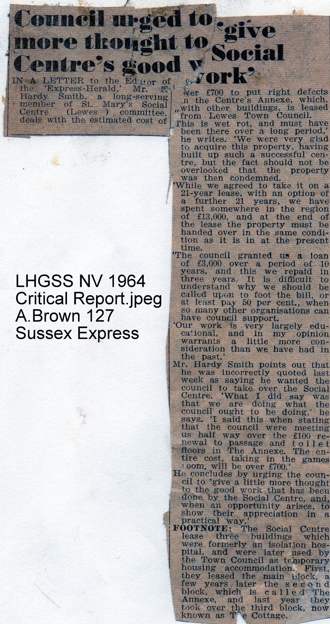 Lewes, Nevill newspaper cuttings 1962 to 1964