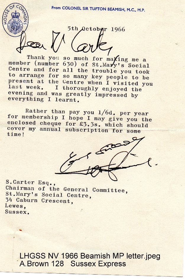Lewes, Nevill 1966 October, Letter from MP Beamish 128