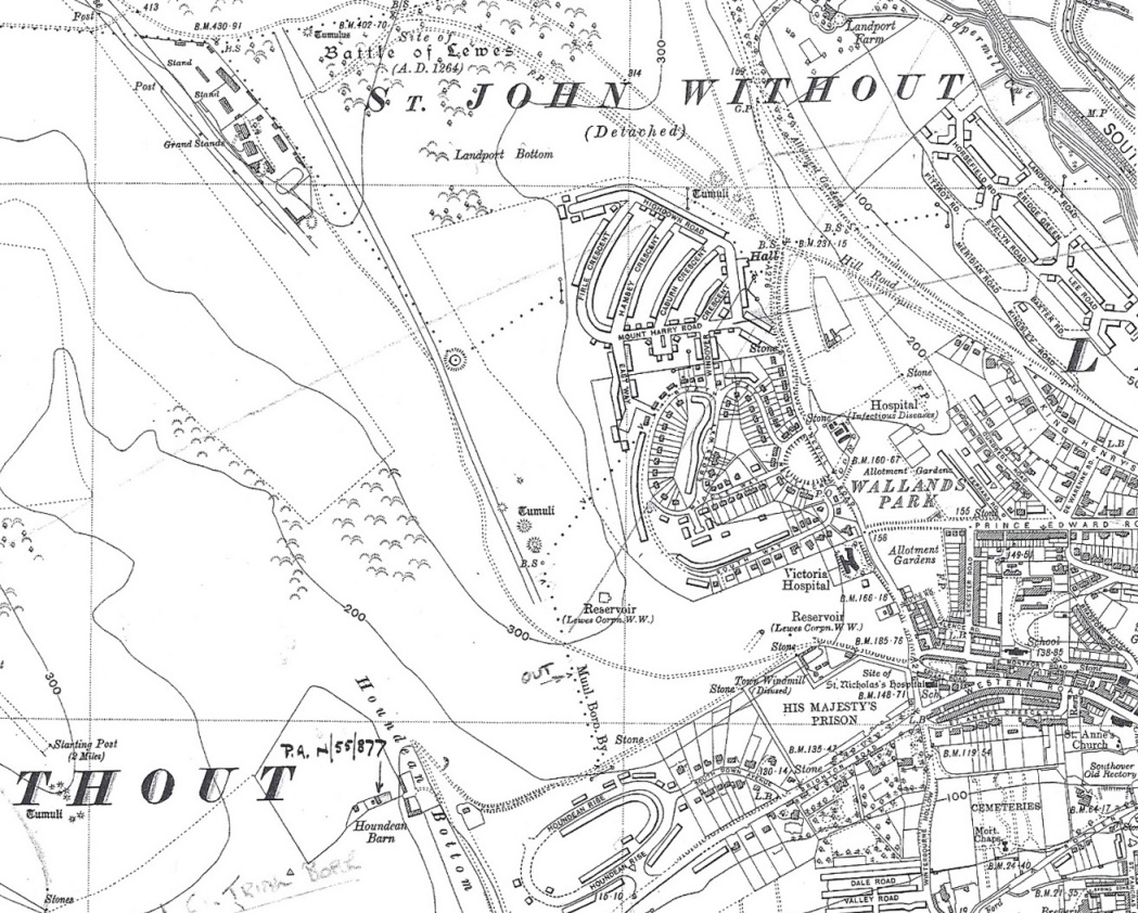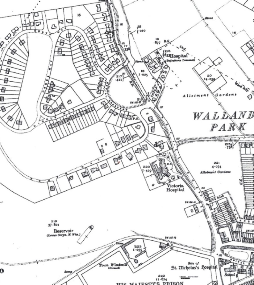 To those of us who frequently walk down the hill from the Nevill into Lewes this observation is perhaps not surprising. There was still no building on the Nevill site by 1911 though housing had crept up the hill and along the Nevill Road since the 1830s and an isolation hospital at St Mary’s had been built.